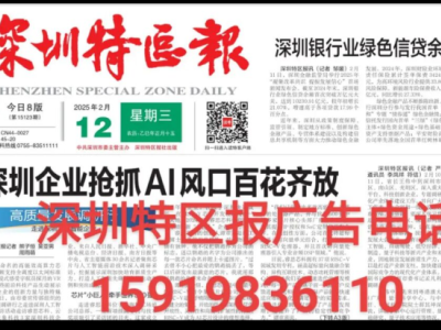 深圳特区报媒体登报连线报社手机:15919836110.微信添加AW-20008,深圳特区报属深圳市委机关报,是以政治、经济、文化报道为主的大型综合性日报。创刊于1982年5月24日,是深圳经济特区权威媒体和第一大报。被誉为“中国改革开放第一报”。先后被授予“中国十大创新传媒”“中国十大领军报业”“全国城市党报十强”“传媒中国年度十大党报”“影响中国党报优秀品牌”等称号。 深圳报业集团,全面贯彻新发展理念,以传媒产业为基础,以“国、资、物、新”即国家级平台建设、资本运作、物业运营、新技术新业务拓展为突破,加快多元化产业发展之路。集团目前运营和参与运营中国(深圳)国际文化产业博览交易会、中国文化产业投资基金、国家对外文化贸易基地(深圳)、国际版权交易中心、中国自贸区信息港、粤港澳大湾区研究院等6个国家级平台,文创会展、资本运营、大数据交易、地铁广告等“传媒+”新兴业态稳步发展,集团产业结构不断优化,整体实力不断增强,为媒体融合发展夯实经济基础,为实现跨越式发展创造了有利条件。百舸争流,奋楫争先。深圳报业集团正在推进新一轮深化改革,围绕粤港澳大湾区建设和深圳建设中国特色社会主义先行示范区的战略要求,对标国内一流、国际先进,推进融合发展、转型发展、创新发展,深入对接“湾区所向”“港澳所需”,进一步巩固壮大主流舆论阵地,不断增强报业集团新闻舆论传播力、引导力、影响力、公信力,建成与深圳建设中国特色社会主义先行示范区相匹配的新型主流媒体集团。