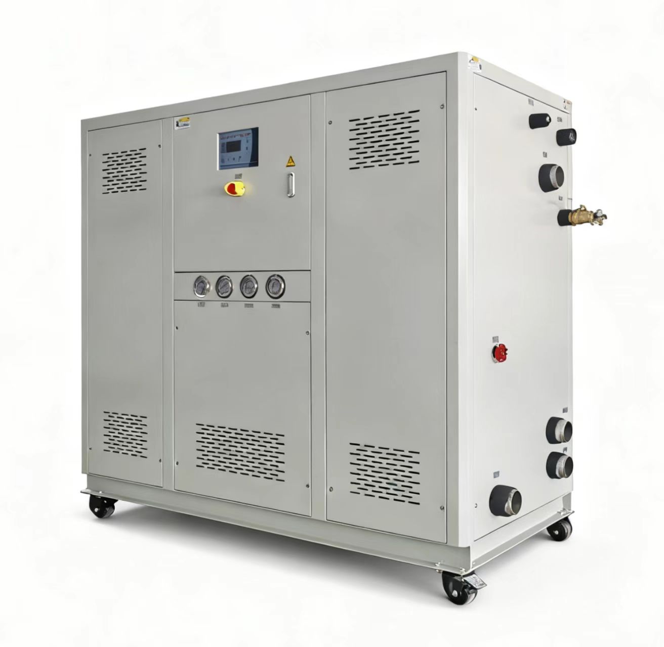 工业冷冻机组(冷水机组)是专为工业冷却生产工序设计,制造的冷水机组。所有机型均配有冻水箱及冻水循环泵,适用于氧化铝,电子,注塑,食品,包装,化工,建材,医药等各行各业,用途十分广泛,工业冷水机可分为三大类型,1.水冷式机组,2.风冷式机组,3.低温机组。安装机组时,水冷式冷水机组必须连接冷却塔及其它冷却水循环泵及输送管道系统,风冷式冷水机组只须连接供水管及冻水管道,接通电源后即可使用。
