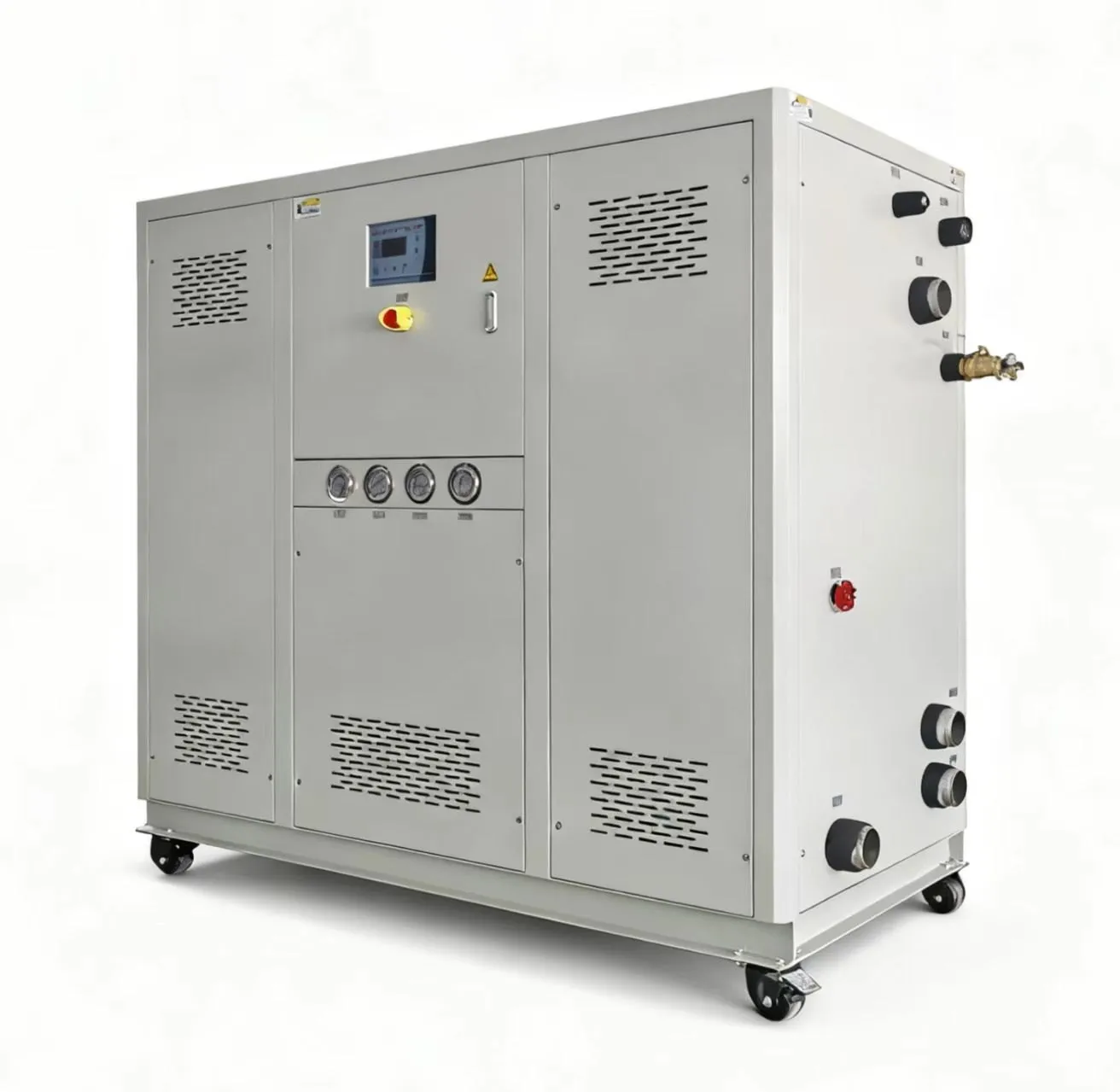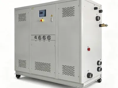 工业冰水机(冷水机组)是专为工业冷却生产工序设计,制造的冷水机组。所有机型均配有冻水箱及冻水循环泵,适用于氧化铝,电子,注塑,食品,包装,化工,建材,医药等各行各业,用途十分广泛,工业冷水机可分为三大类型,1.水冷式机组,2.风冷式机组,3.低温机组。安装机组时,水冷式冷水机组必须连接冷却塔及其它冷却水循环泵及输送管道系统,风冷式冷水机组只须连接供水管及冻水管道,接通电源后即可使用。