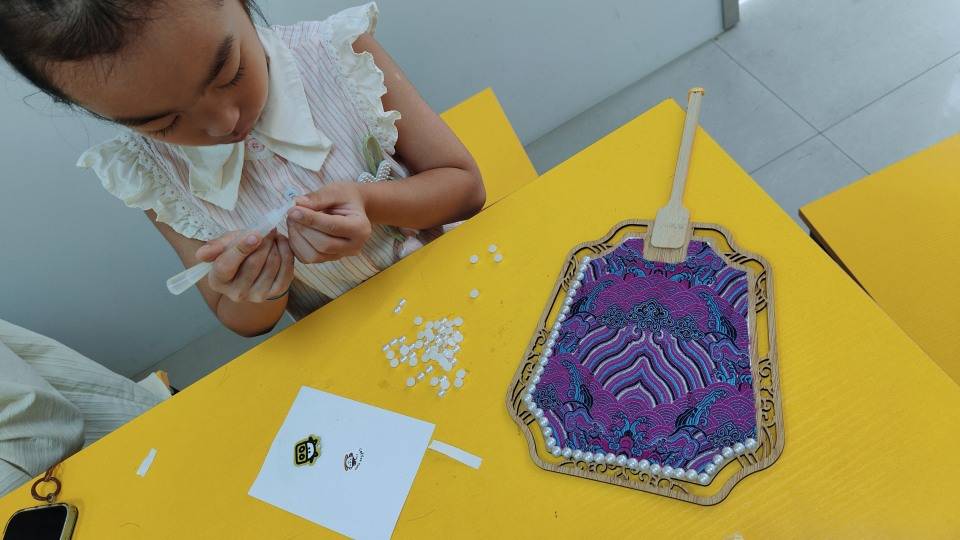 在苏州三六六社会实践的宋锦珍珠扇手作课堂,孩子们不仅触摸非遗、感知传统美学,更在裁剪与粘贴间锻炼精细动作能力。这是一次文化的启蒙,也是一粒文化认同的种子,在指尖悄然生根。